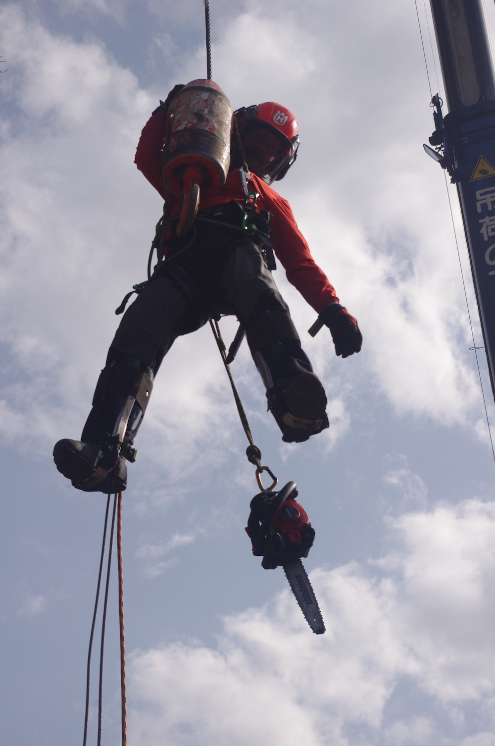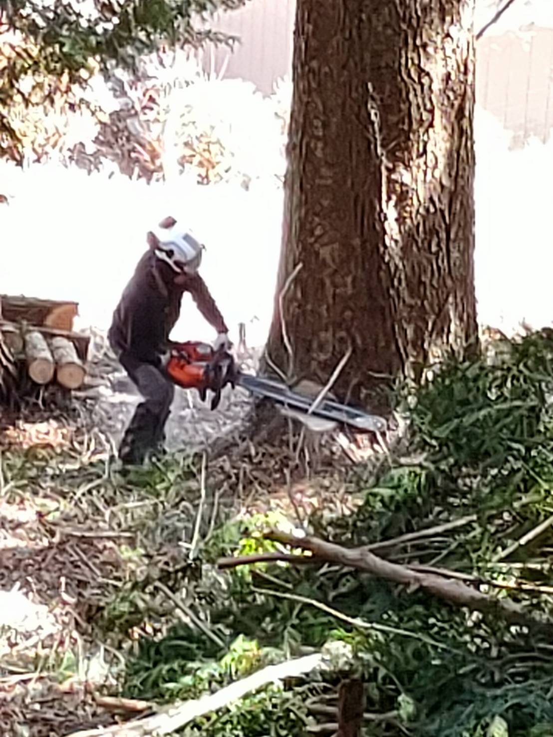 春夏秋冬、関係なく伐採の必要があれば山に入ります。個人林であろうが、伐期が来ている木はある程度、間伐してあげないと。唐松は柱や合板に使われる等、需要があります。目の締まり具合とか幹の肌が変化してきます。120年ほど経った唐松は天唐と呼ばれ重宝されます。唐松は根が少ないので倒れやすく、次の木を植えてあげないと森が荒れてしまいます。広葉樹も同じ、実のなる木がないと、獣が山から降りてきてしまう。実は、伐採は冬が1番適しています。他の季節は、樹皮が剥いても、腐りやすく虫も入りやすいので向きません。氷点下の中、雪の深い時期に。去年は、塩尻市の洗馬の山に皆伐に行きました。木を倒す際もきちんと方向を定めないと、思いがけず逆に倒れてしまう場合もあります。よほど経験を積んだ方でないと危険です。